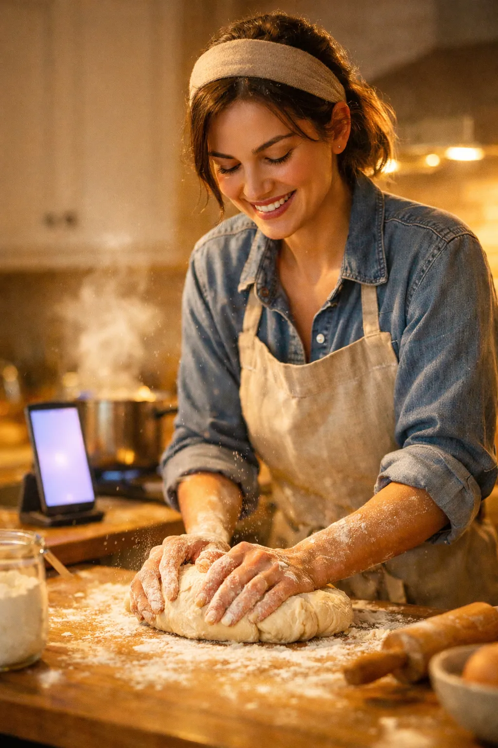 Hands covered in flour? Just talk. MAMAM guides you through every step without touching your screen.